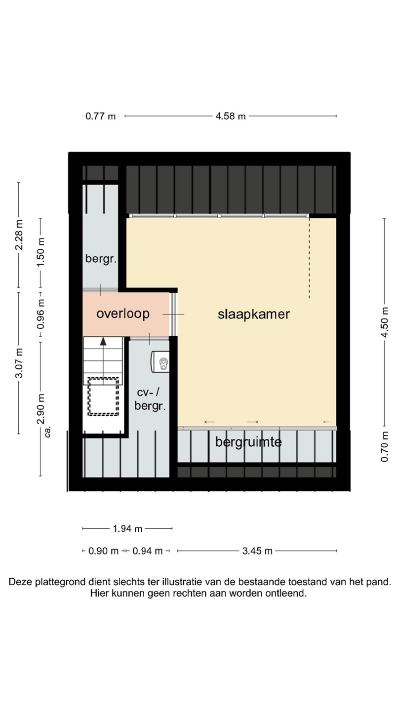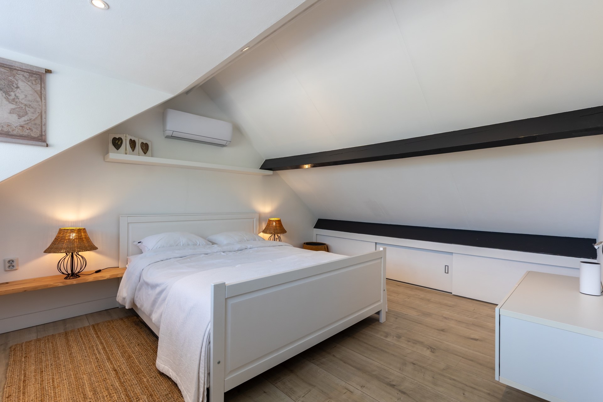 middels vaste trap via lichte overloop naar royale zolder met zolderkamer (23m2) met airco en dakkapel, c.v.berging (type HR-combi, eigendom, 2016) en aparte bergruimtes