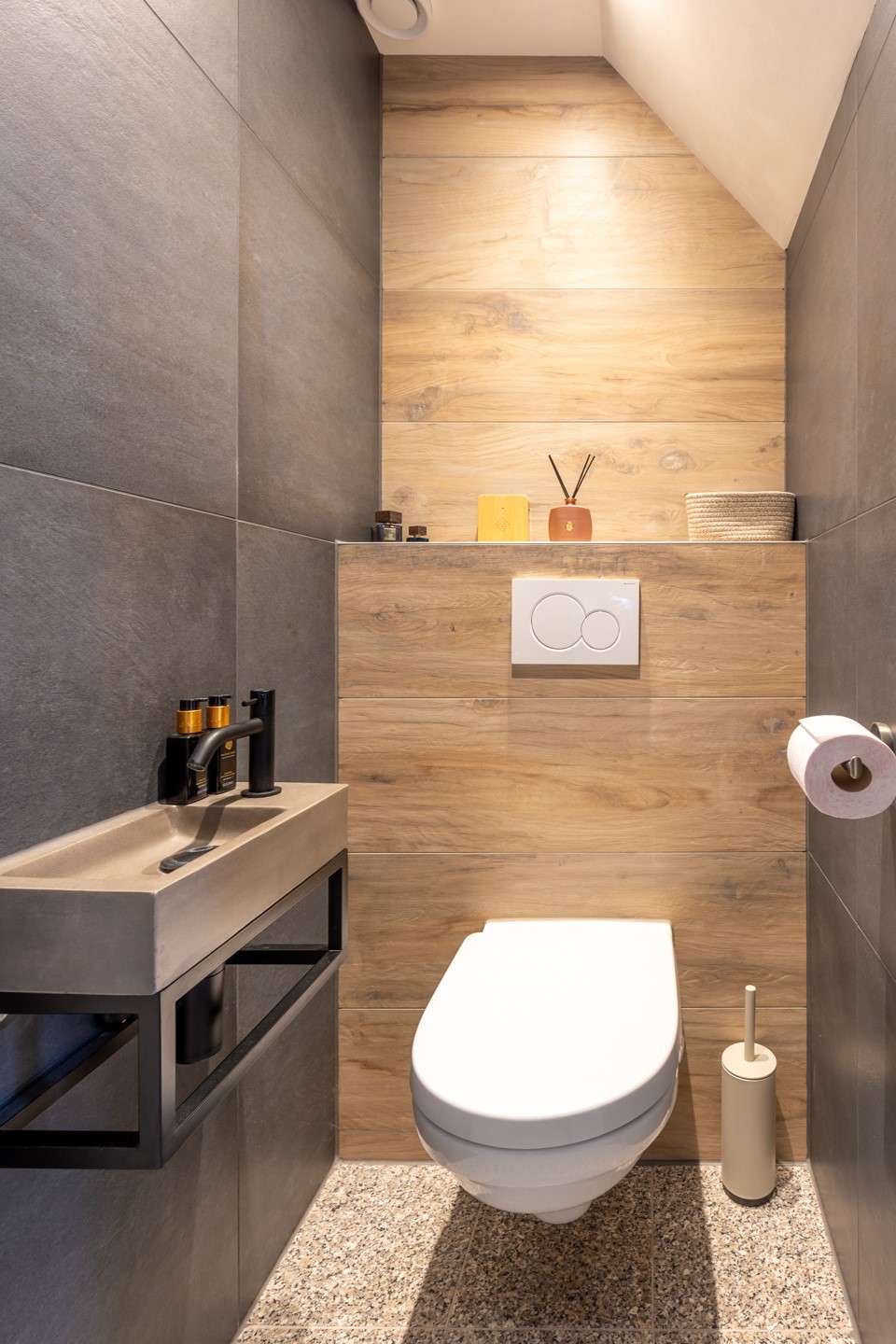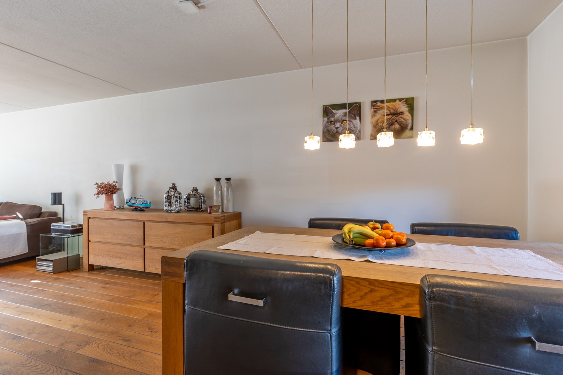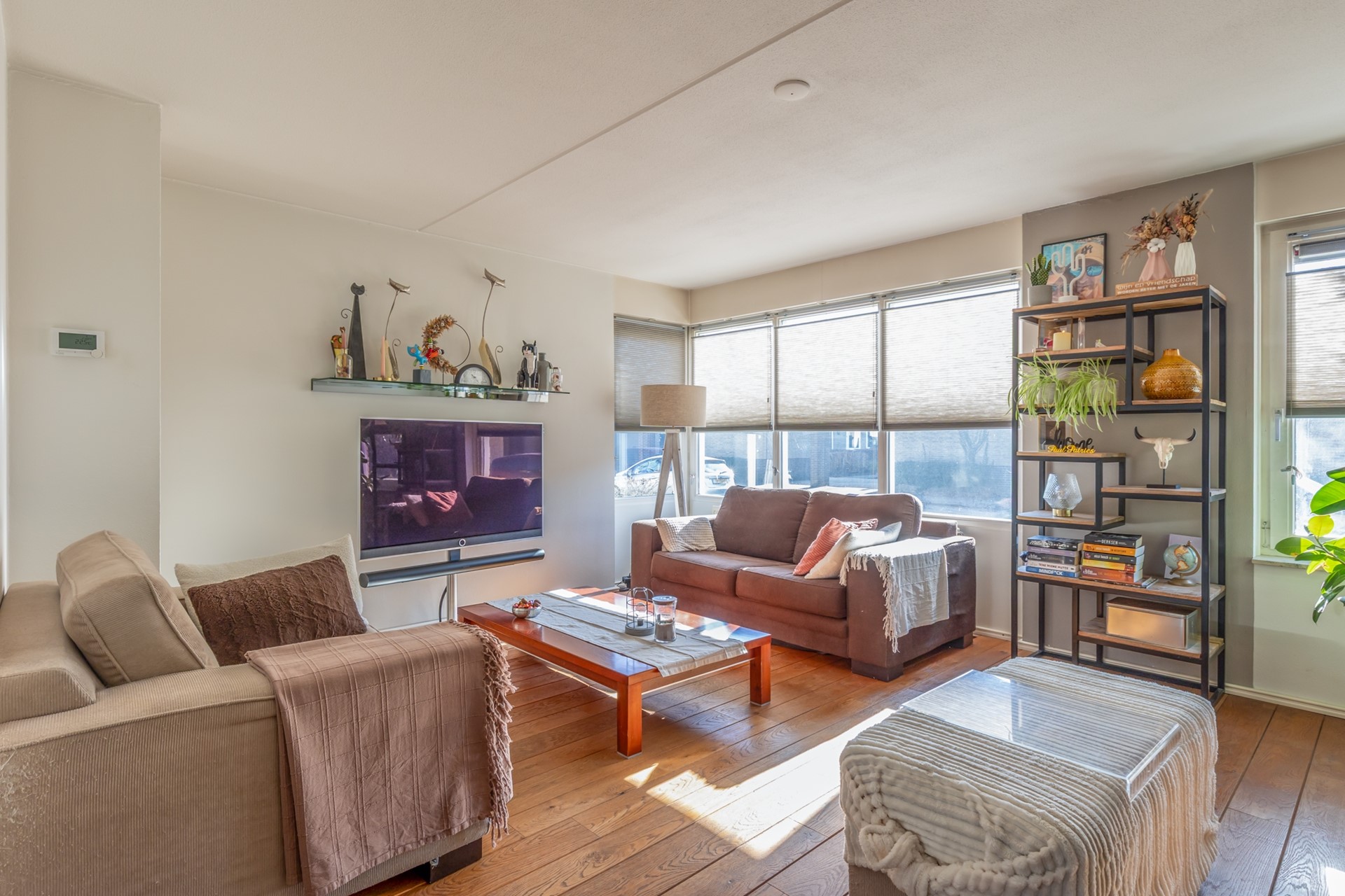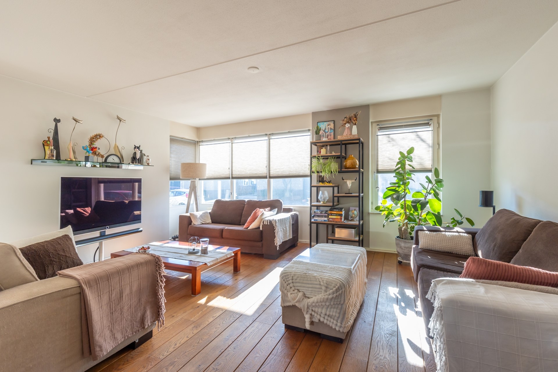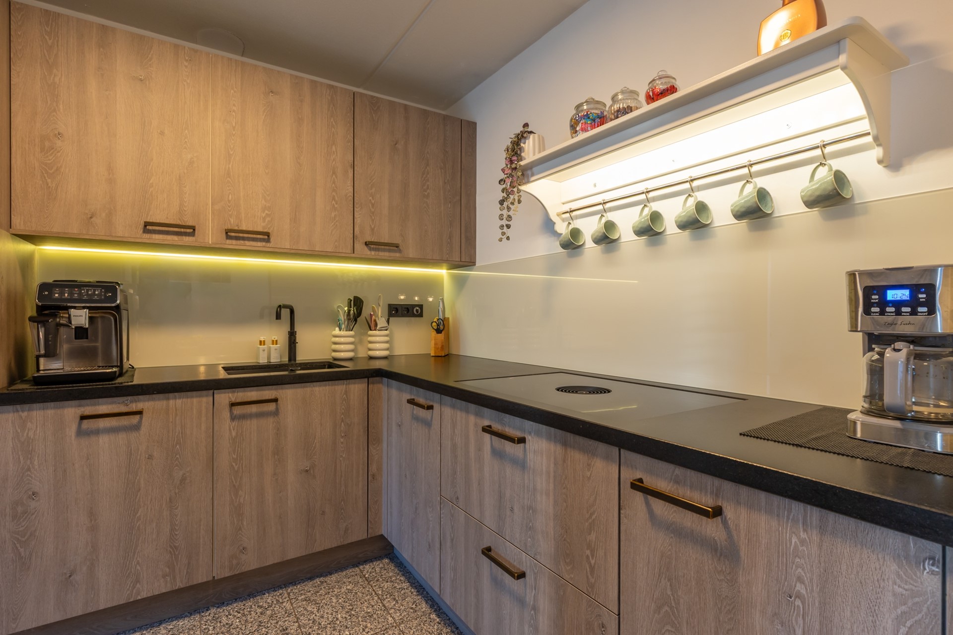 entree, hal, meterkast, moderne toiletruimte (2025) met fonteintje, L-vormige woonkamer (38m2) met parketvloer, moderne half-open keuken (2024, 6,5m2) met combi-oven, Bora inductiekookplaat, vaatwasser en Quooker , bijkeuken/verdeelhal naar inpandig bereikbare garage (6.05*2.70) met elektrische sectionaalpoort