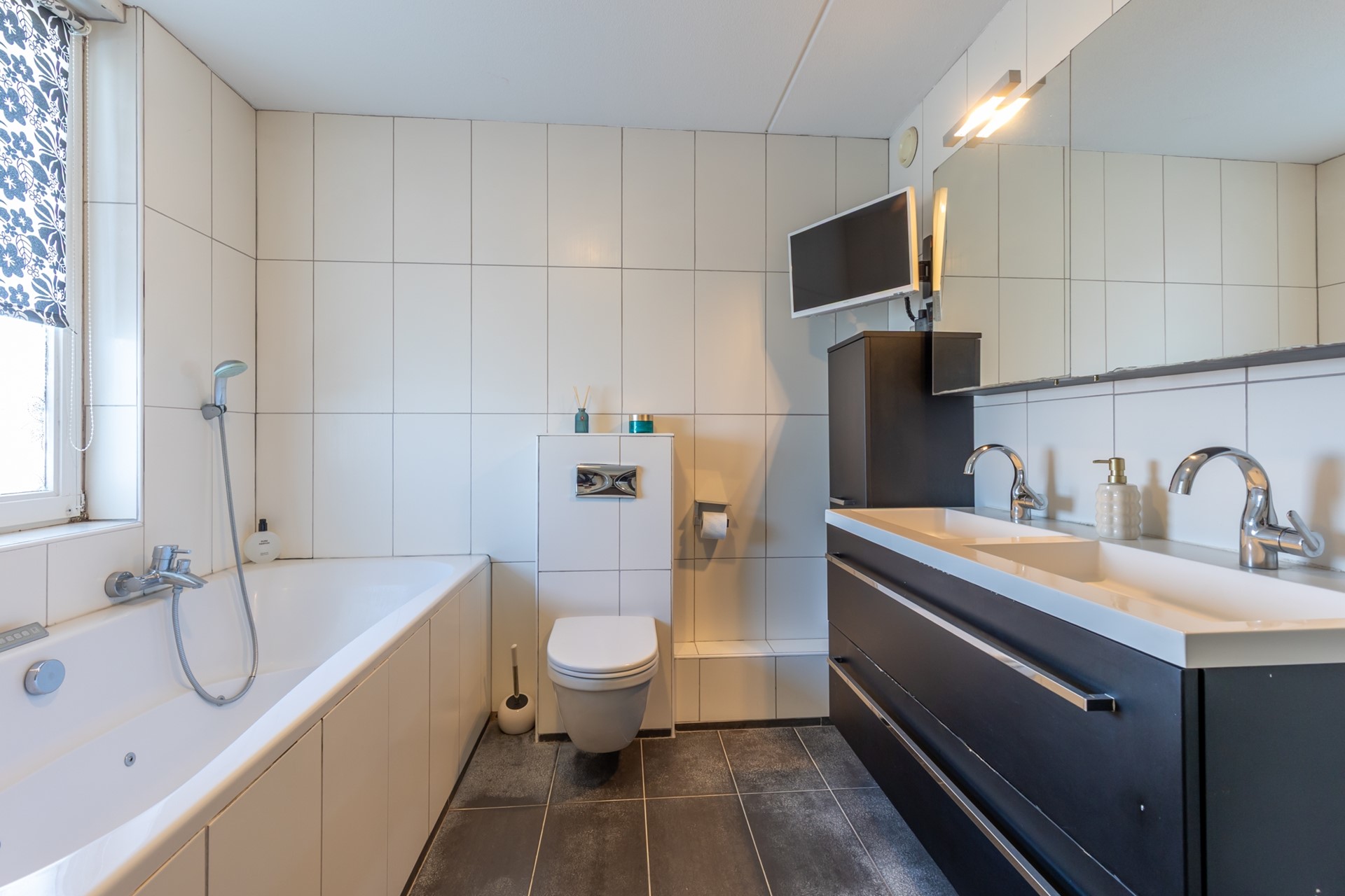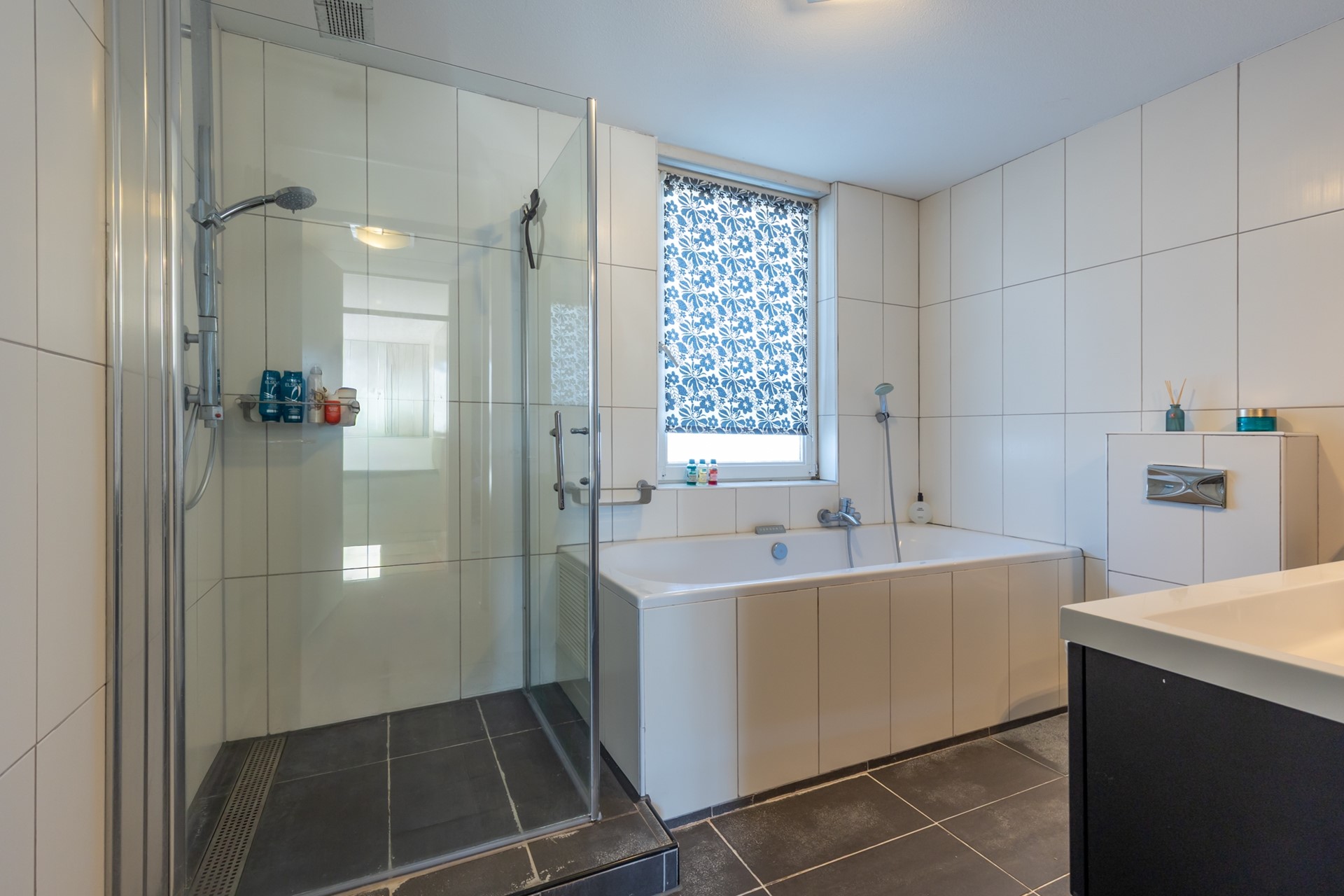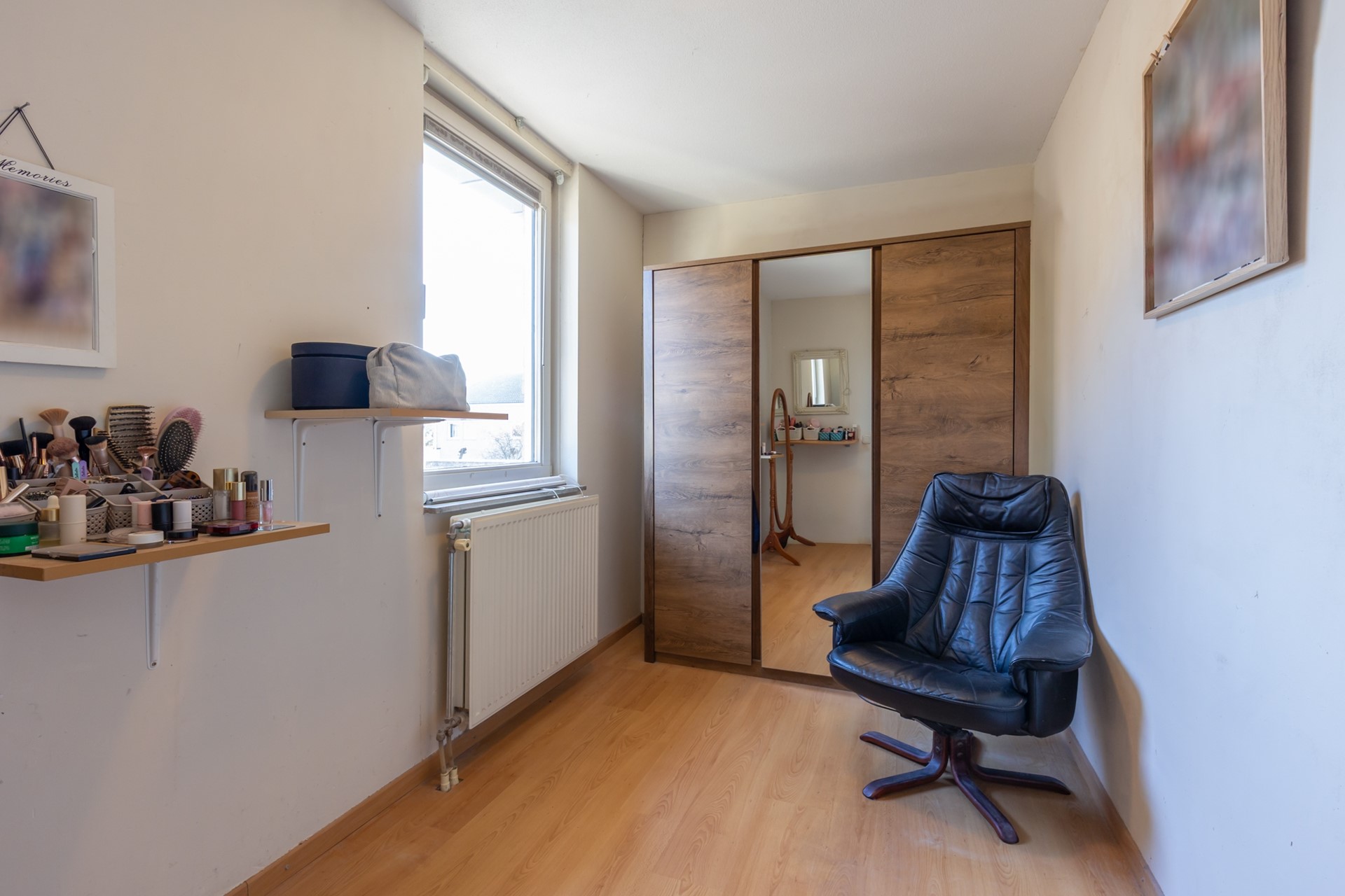 overloop, 3 slaapkamers (4.98*3.16, 4.10*2.07 en 4.08*2.04) met laminaatvloeren, badkamer (3.10*2.56) met ligbad, douchecabine, dubbele wastafel in meubel en 2e toilet