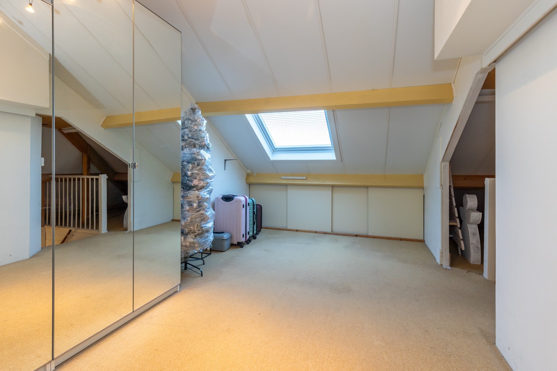 middels vaste trap bereikbare zolderverdieping, opgedeeld in 2 ruimtes- bergzolder met c.v. ketel (2014, eigendom) en aansluiting wasmachine en zolderkamer (3.28*2.98) met elektrisch dakraam met regensensor